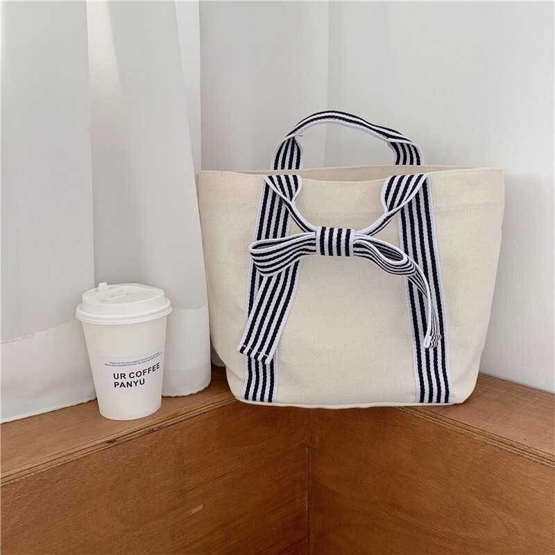 大人気 ボーダー リボン トートバッグ ブラック 韓国 可愛い 大人
