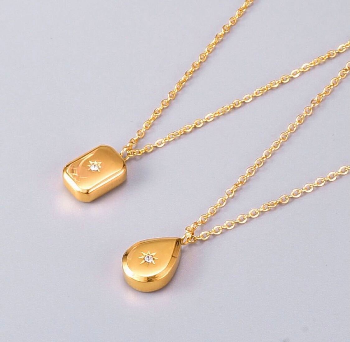 しずく型 長方形 太陽 ゴールドネックレス 2点セット