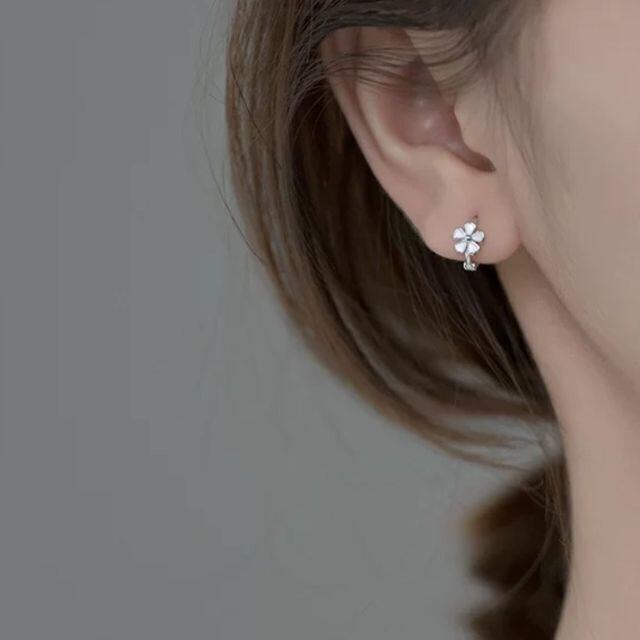 シンプル フラワー フープピアス ゴールド 花 キラキラ 韓国