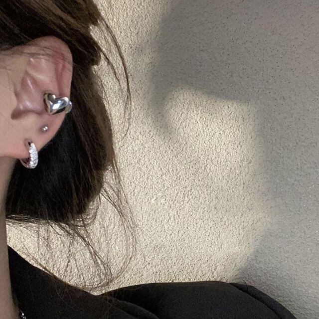 イヤーカフ ハート 型 イヤリング ピアス 可愛い 韓国 両耳用