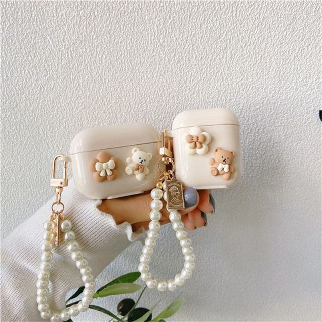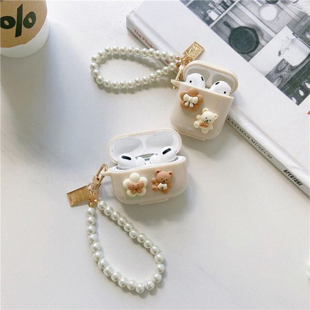 とってもかわいい クマとパールチェーンのAirpods ケースです!