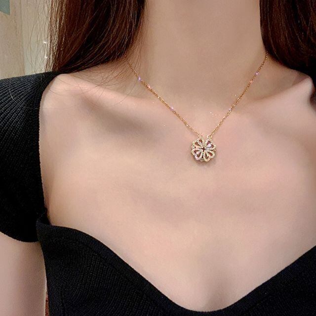 四葉 ハート ネックレス シルバー 2way ジュエリー 韓国