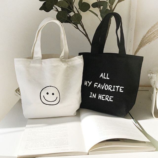 スマイル にこちゃん 英字 バッグ トートバッグ 韓国 シンプル 小さめ
