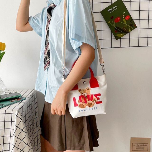 2way クマ キャンバス トートバッグ 韓国 可愛い ネイビー