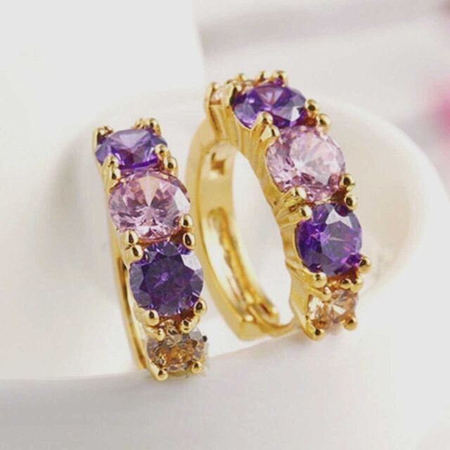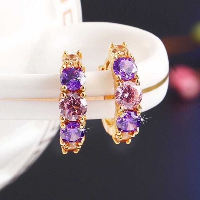 CZ(キュービックジルコニア)を使用したアメジストカラーとピンクトパーズカラーのかわいいフックピアスです♡