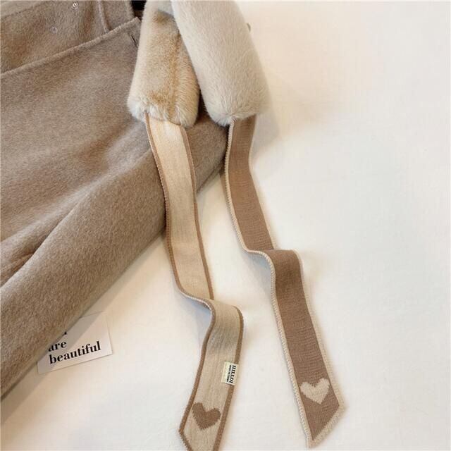 ファー マフラー ハート ベージュ 韓国 可愛い 秋 冬 トレンド