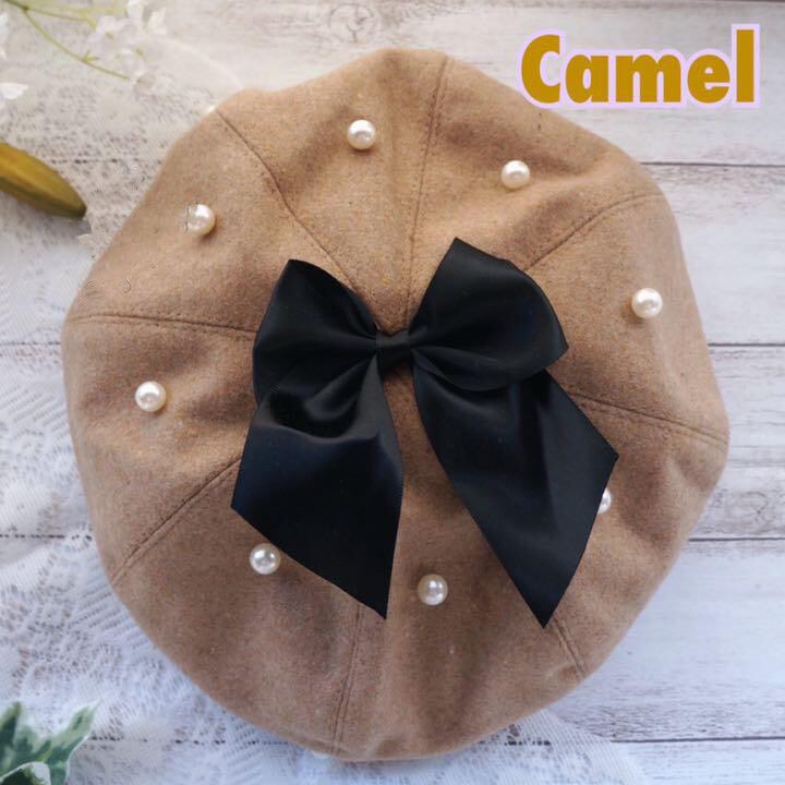 柔らかく、かぶりやすいパール リボン ベレー帽です!!
