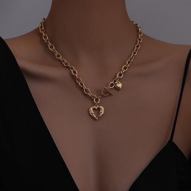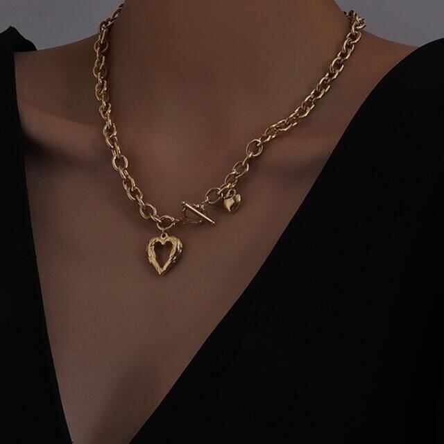 ゴールド ハート ネックレス ジュエリー チェーン 316L ステンレス ハート