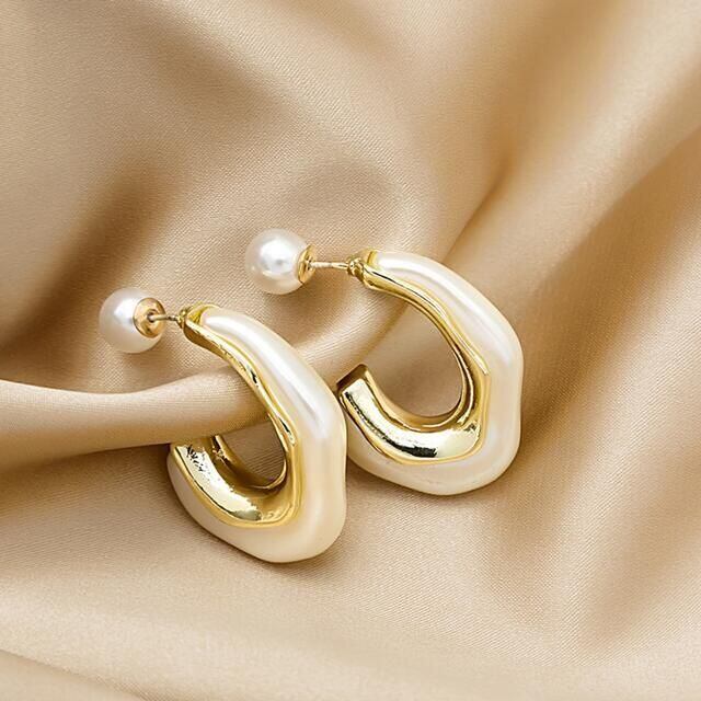 パール フープピアス 変形 ねじり レディース ゴールド 両耳