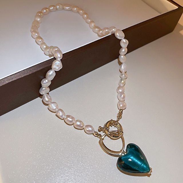 高品質 淡水パール ブルー ハートバロック パール ネックレス 小粒