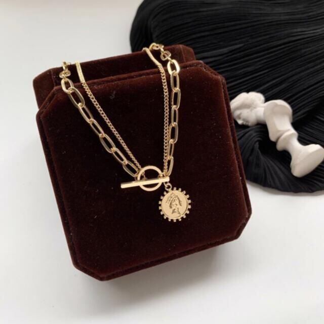 2連 マンテル コインチェーンネックレス 多重 重ね付け