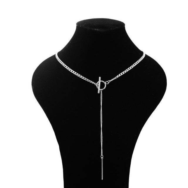 韓国 シルバー チェーン マンテル ネックレス ストリート メンズ レディース