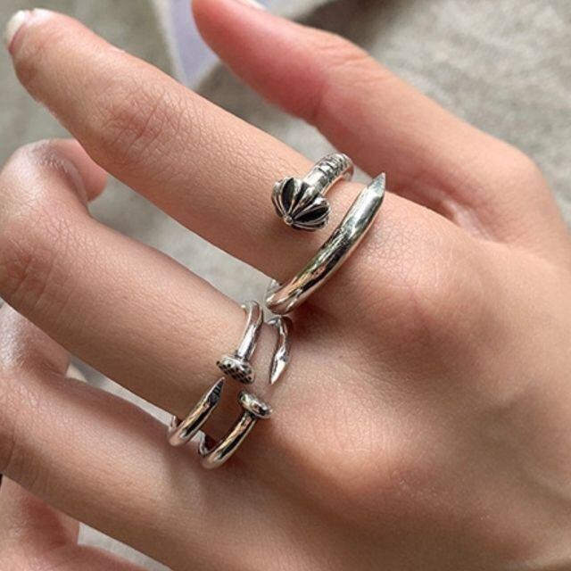 2点セット クロス 釘 リング シルバー メンズ レディース 指輪 韓国