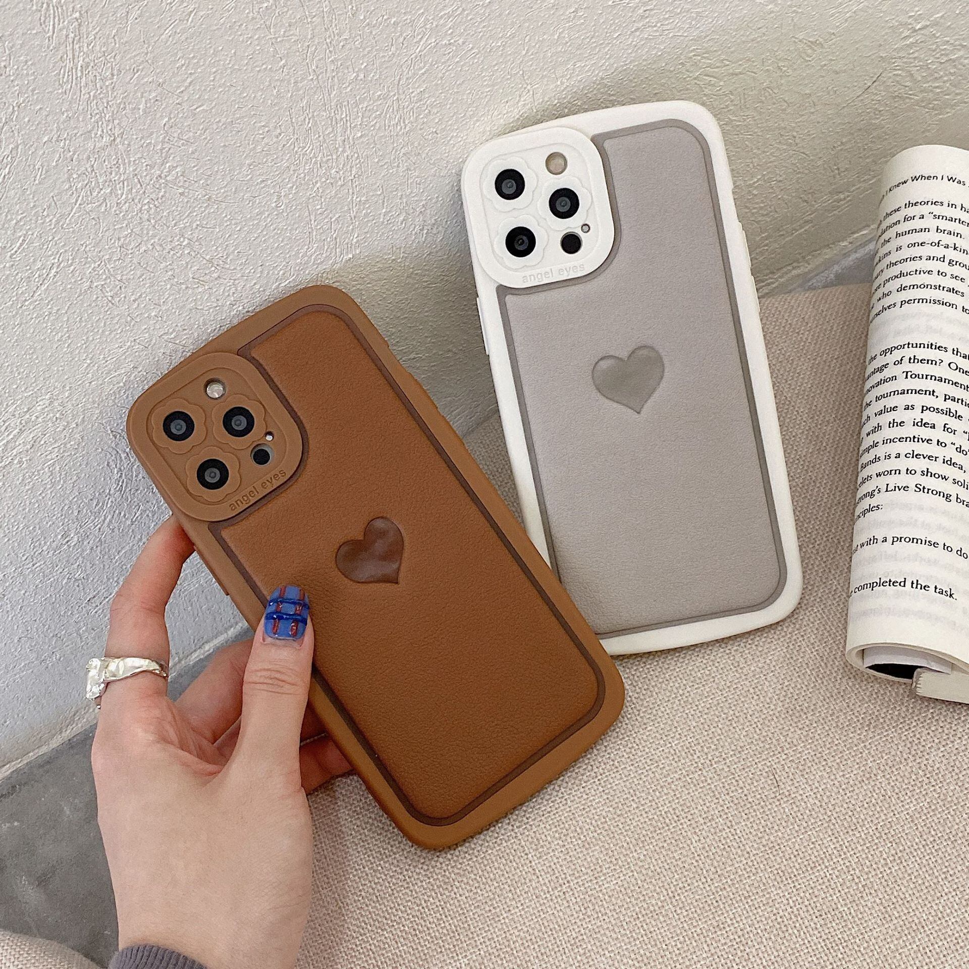 iPhone13pro 対応 ハート カバー スマホケース 花 キャメル 高品質 韓国