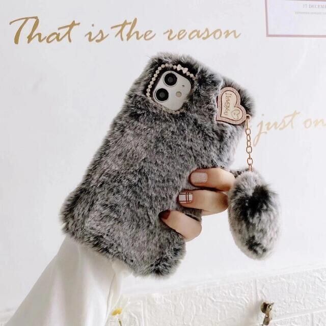 ハートチャーム付 iPhoneケース ふわふわ キラキラ 韓国 秋冬