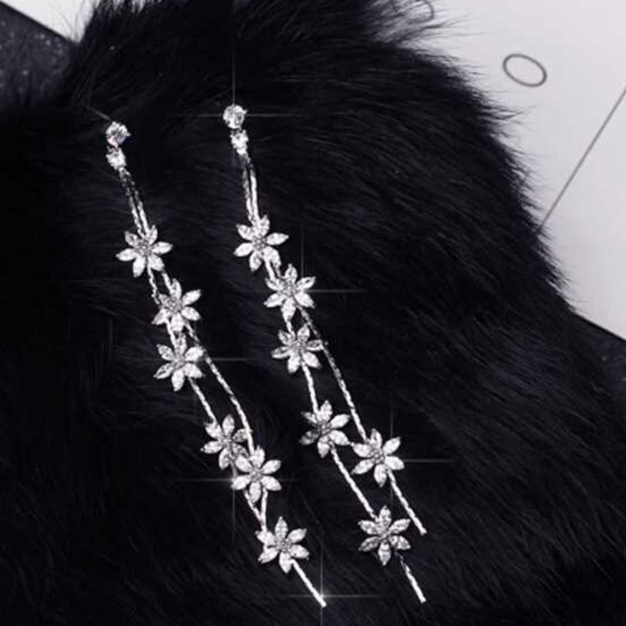 フラワービジューロングピアス 韓国 キラキラ 揺れる 大人可愛い
