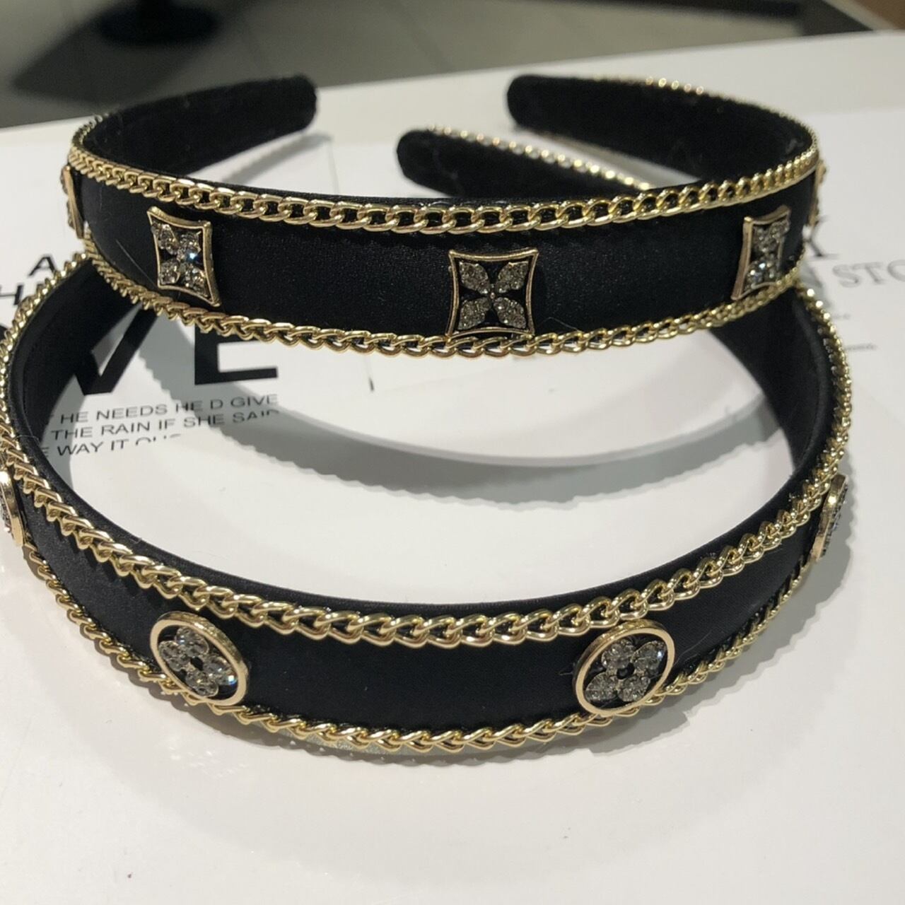 クローバービジューカチューシャ 丸型 キラキラ ゴールド チェーン