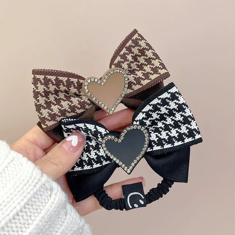 ハート 千鳥格子柄リボン ヘアゴム 韓国 インスタ 大人可愛い 二点セット