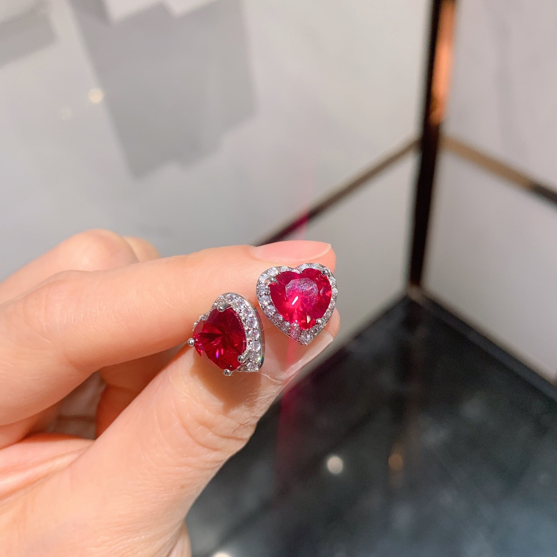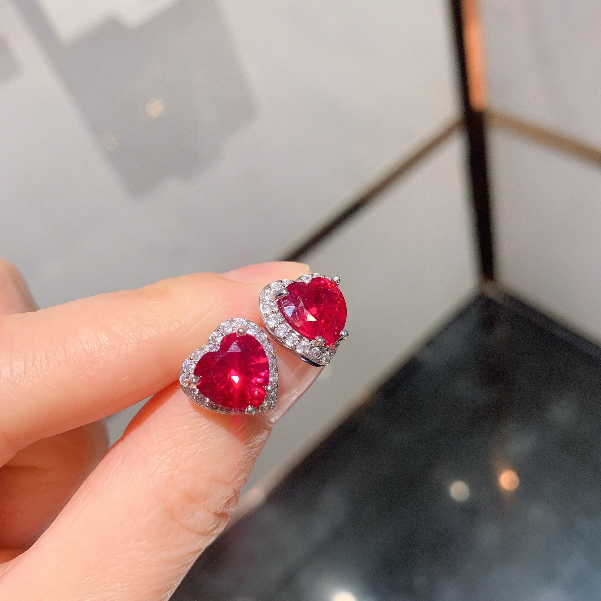 ハートピアス ルビー 人工 ハートシェイプ ジルコニア ダイヤ