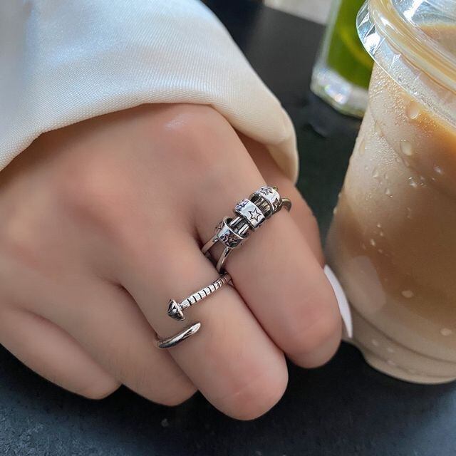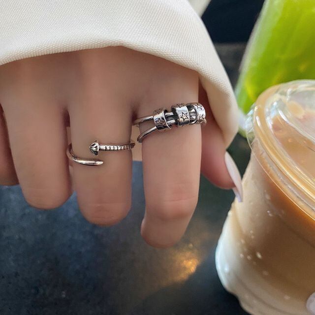 2点セット クロス 釘 スター リング シルバー メンズ レディース 指輪 韓
