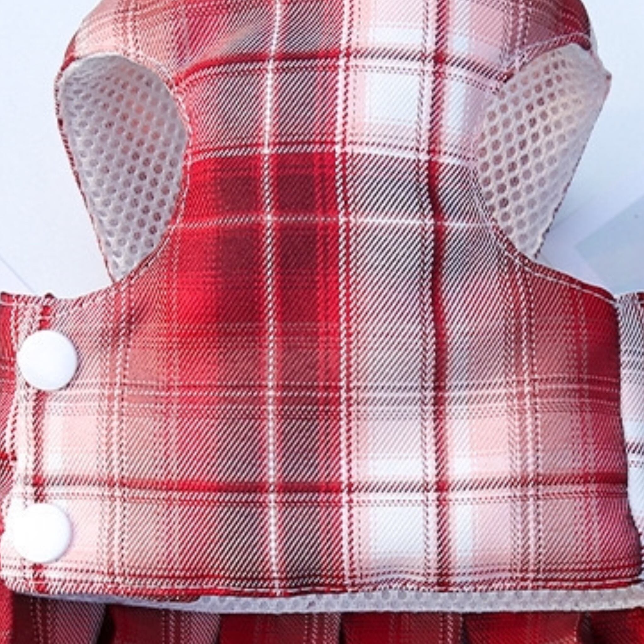 Sサイズ リード ハーネス リボン チェック水色 犬 猫 オールシーズン