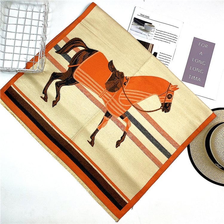 ストール 馬 ネイビー ブランケット 大判 膝掛け 上品 韓国 カシミアタッチ