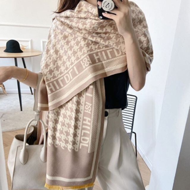 千鳥格子 ストール ブラック ブランケット 膝掛け 上品 おしゃれ 柄 韓国 カシミアタッチ 秋 冬