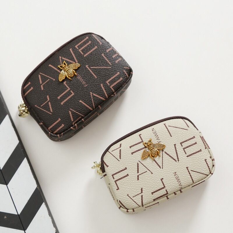 蜂 コインケース ホワイト 韓国 小銭入れ ポーチ レザー コンパクト