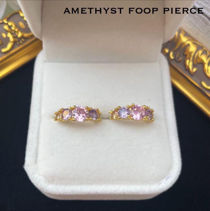 フープピアス イエローゴールド アメジスト ピンクトパーズ CZダイヤ