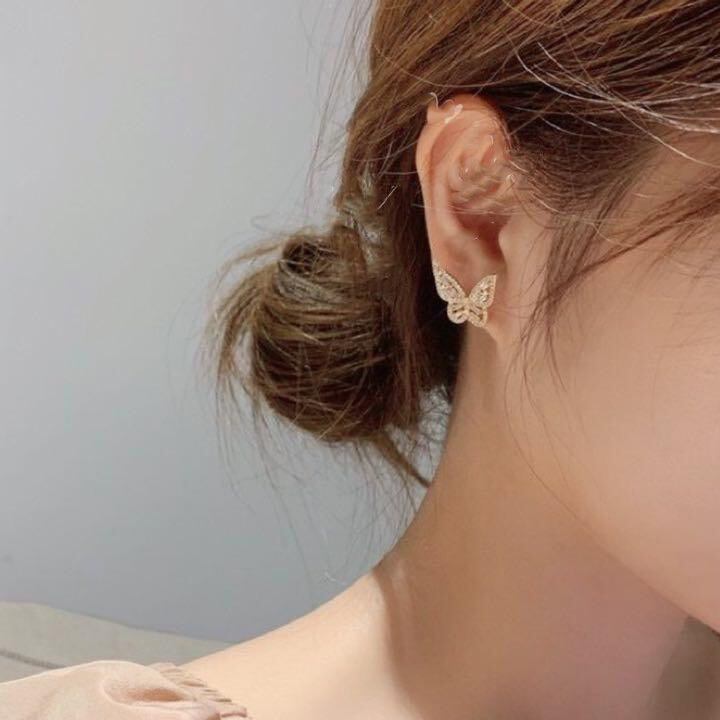 バタフライピアス ゴールド キラキラ クリスタル 蝶 シンプル おしゃれ