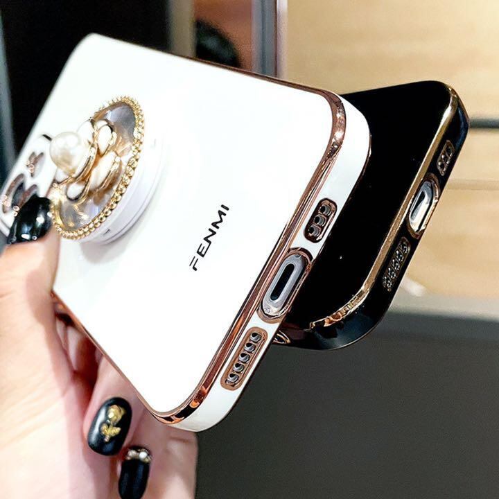 iPhone12 対応 カメリア グリップ付 ブラック パール韓国