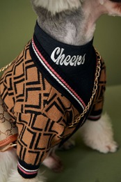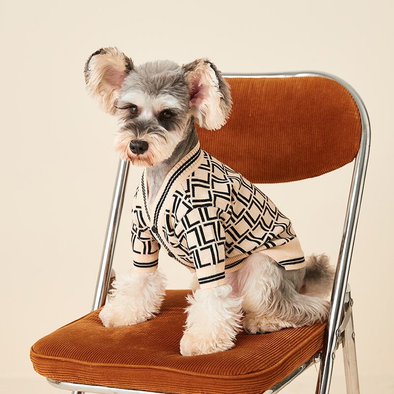 犬 服 幾何学柄カーディガン&英字刺繍Tシャツのセット 男の子女の子兼用 Mサイズ