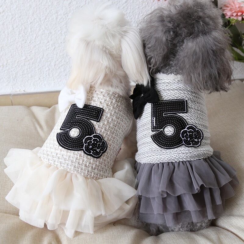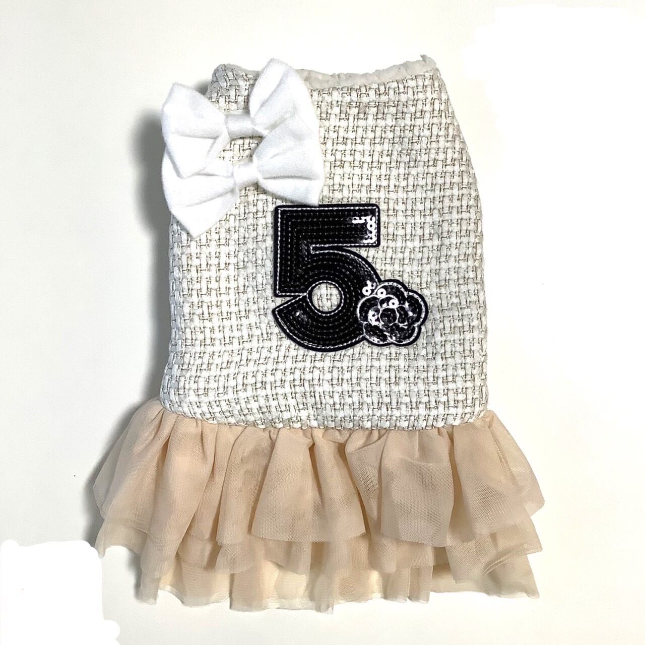 犬服♡ツイードチュールワンピース♡♡カメリア♡リボン♡秋冬♡Mサイズ