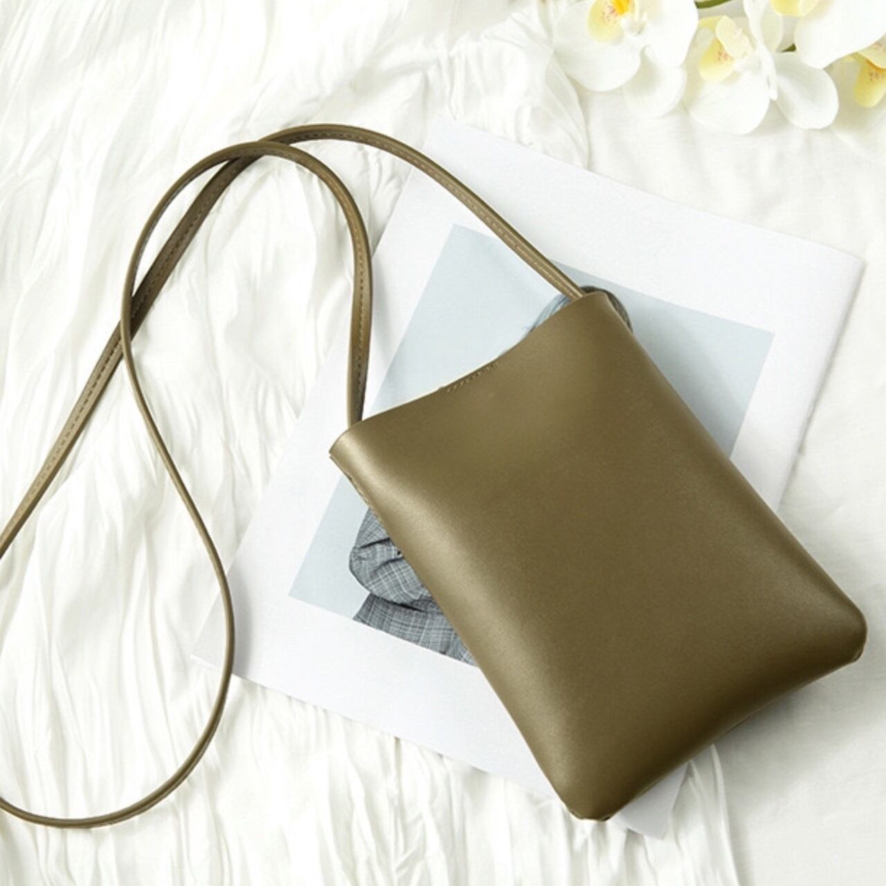シンプル ポーチ ショルダーバッグ カーキ ミニ ボディバッグ 携帯 スマホ 斜めがけ