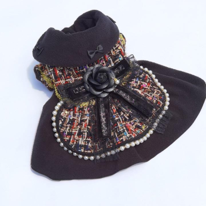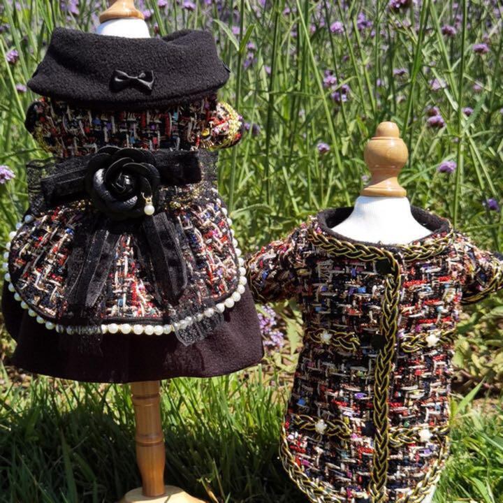 犬服 クラシカルツイード ワンピース ブラック 女の子用 秋冬 Mサイズ