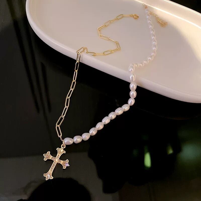 シンプルなクロスパールのネックレスです。