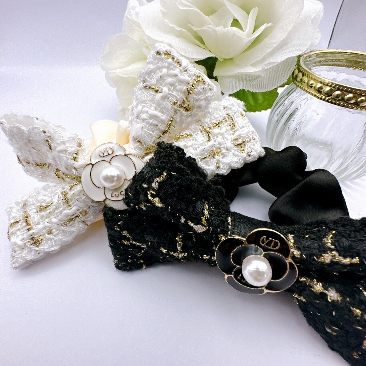 こちらはパール ツイード カメリア チャームが可愛いシュシュです!