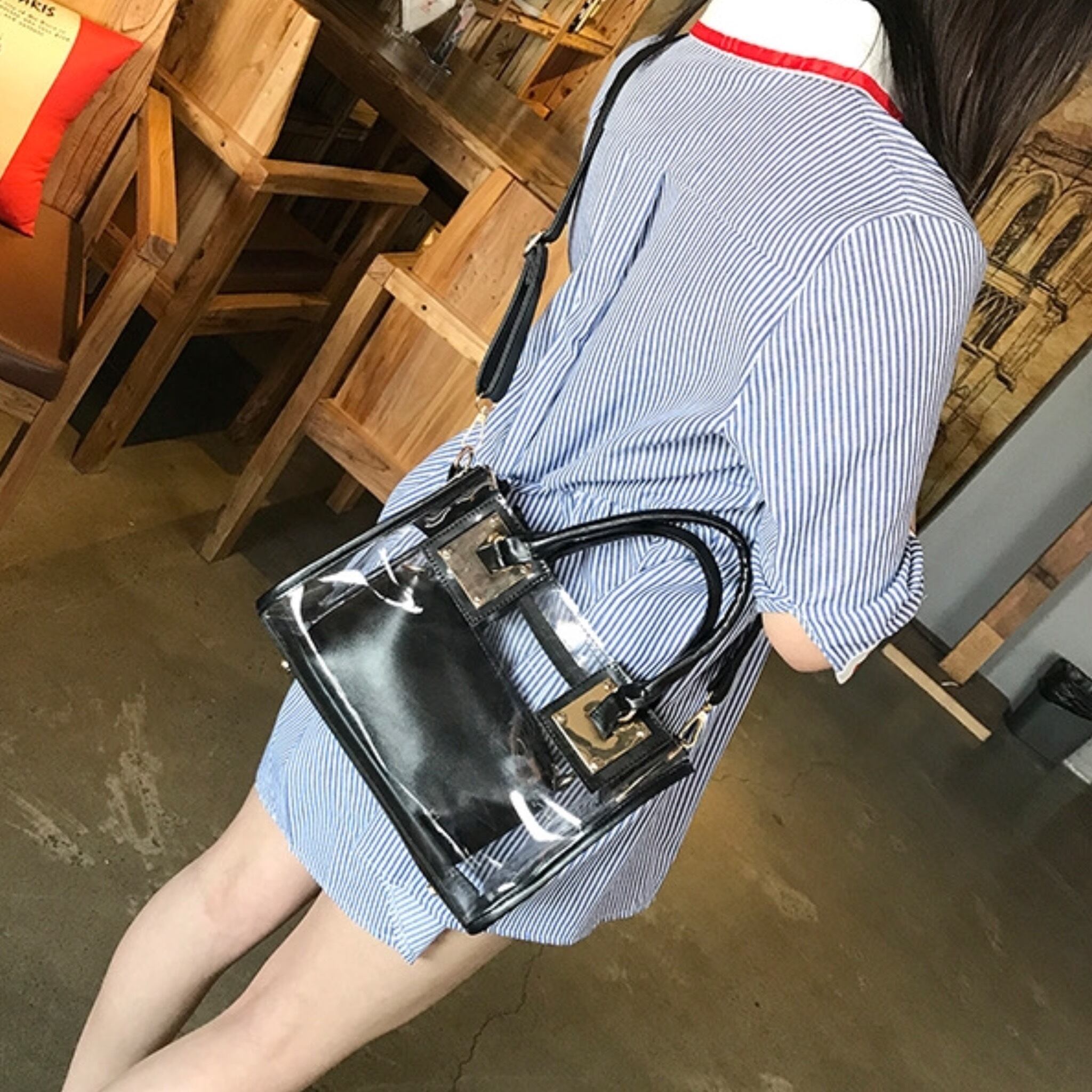 PVC素材の2WAY仕様で、肩紐が付いているので(取り外し可能)クロスボディバッグとしても使用可能です。