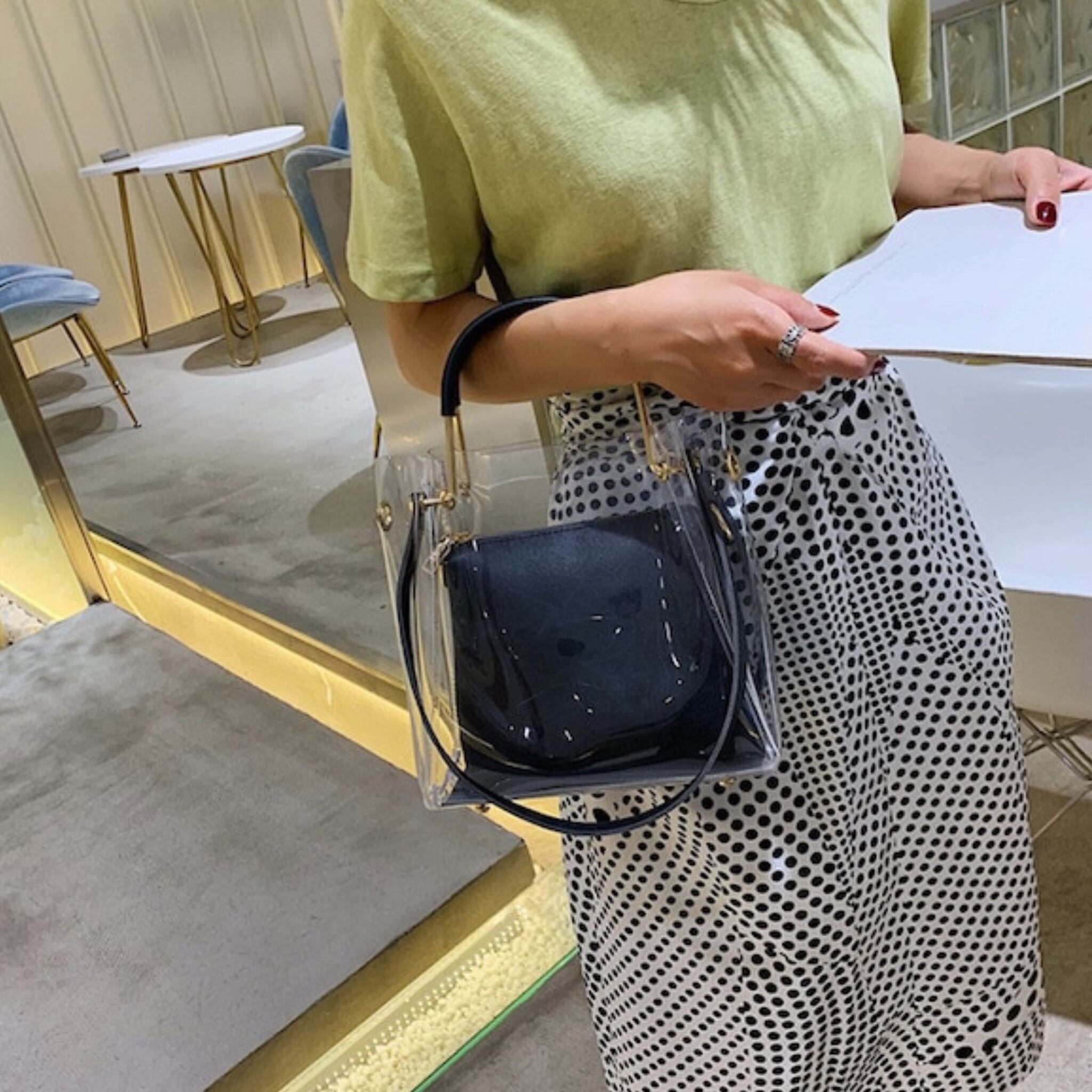 3WAYクリアバッグで、ハンドバッグ、ショルダーバッグ、トートバッグとして使用可能。