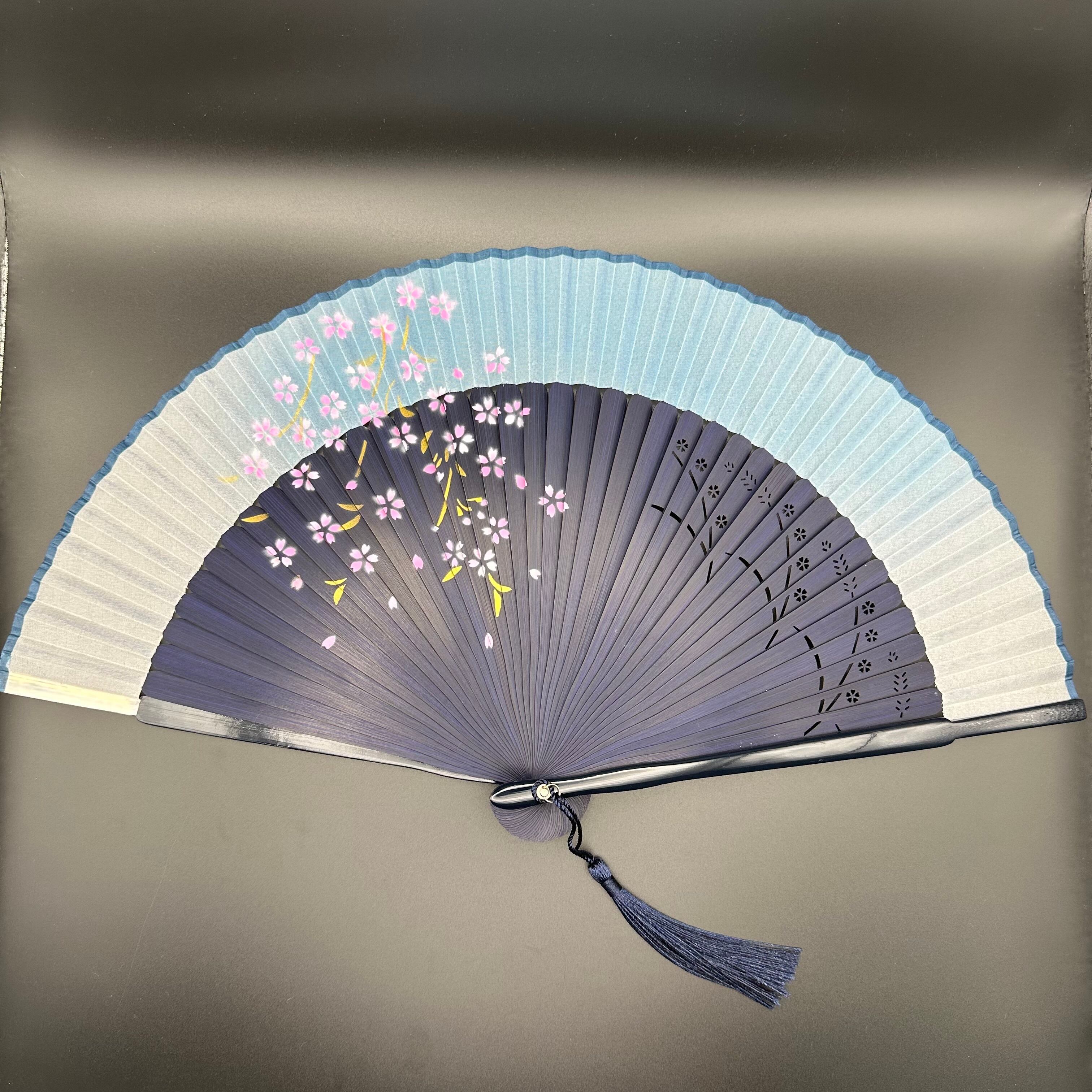 レディース 扇子 ブルー ネイビー 桜 軽量 プレゼント 夜桜