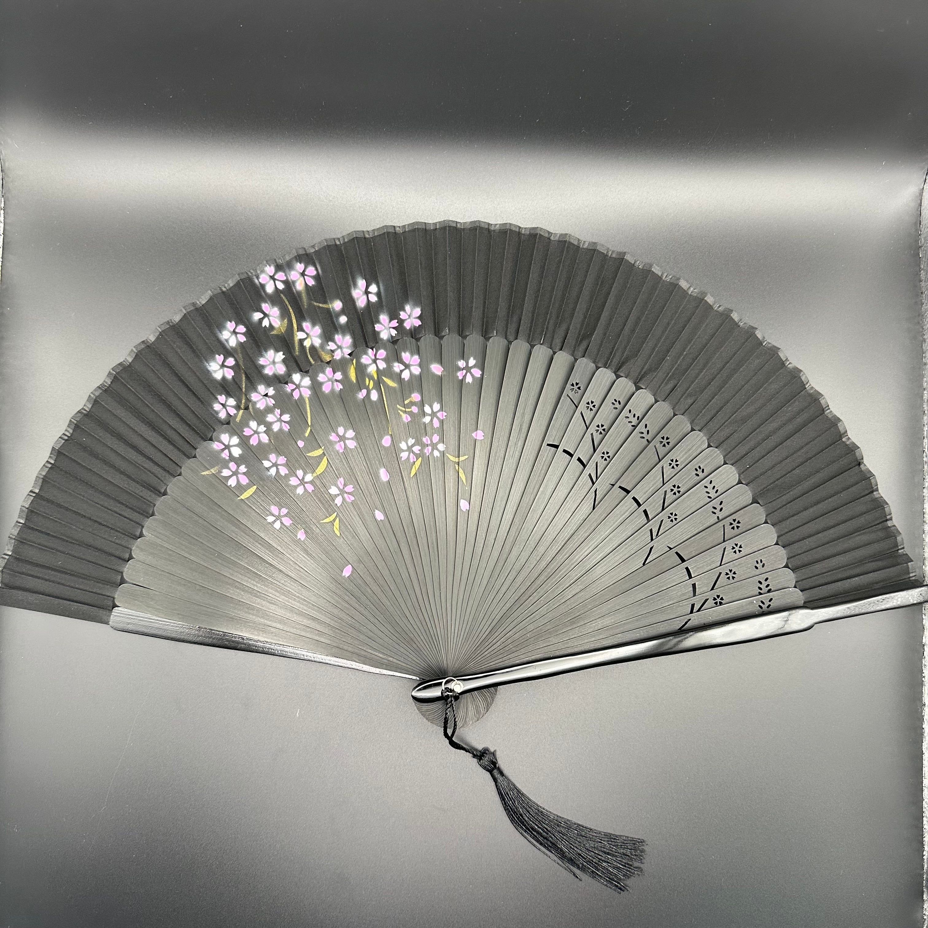 扇子 ブラック 桜 軽量 お洒落、プレゼント 夜桜 レディース 花火 祭り