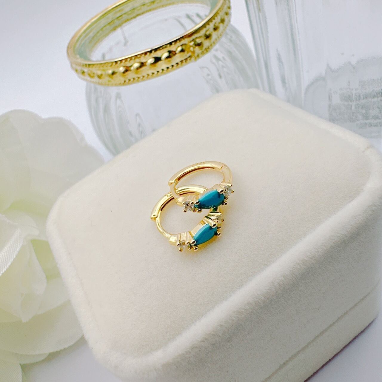 美しい水滴形のターコイズ調ブルーがアクセントで、キュービックジルコニアがキラキラと輝きます。