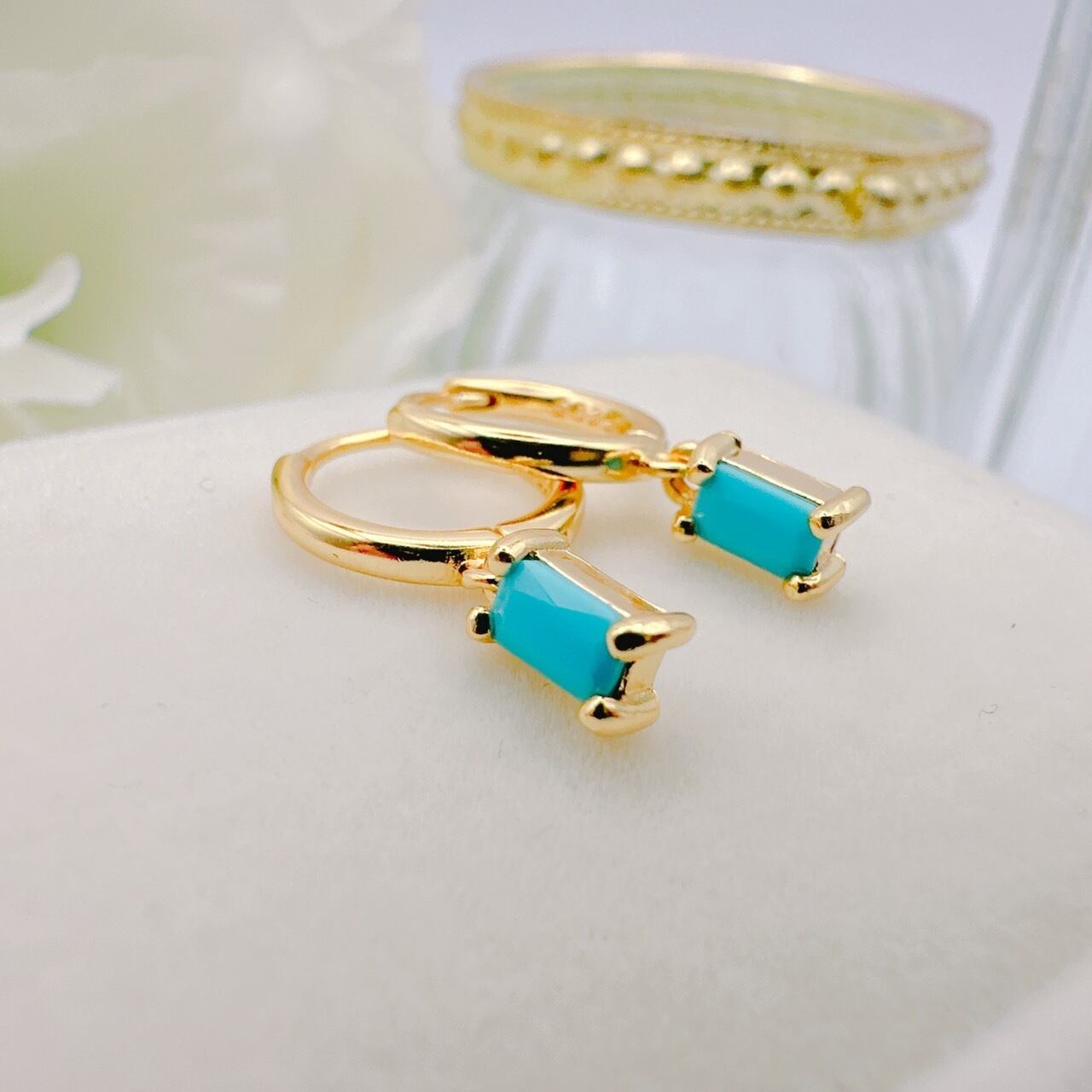 ターコイズ ピアス レディース フープ ゴールド ブルー スクエア