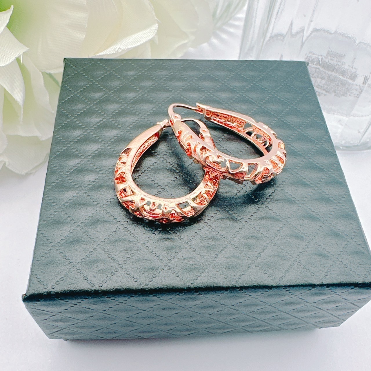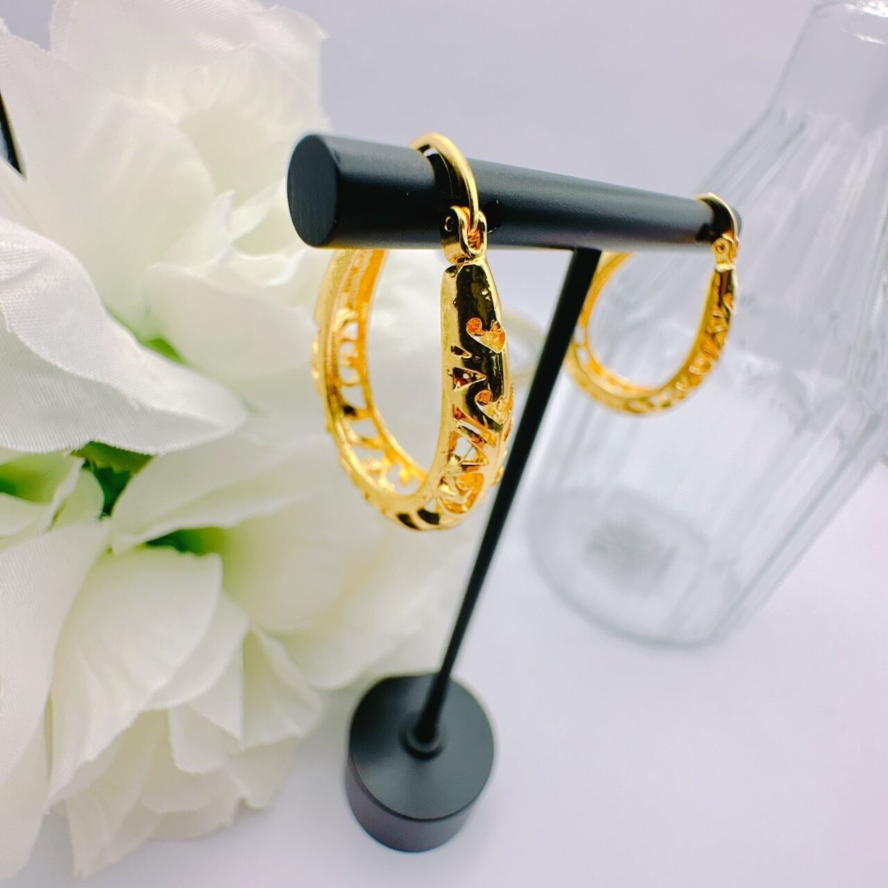 繊細なデザインでボリューム感のあるフープピアスで