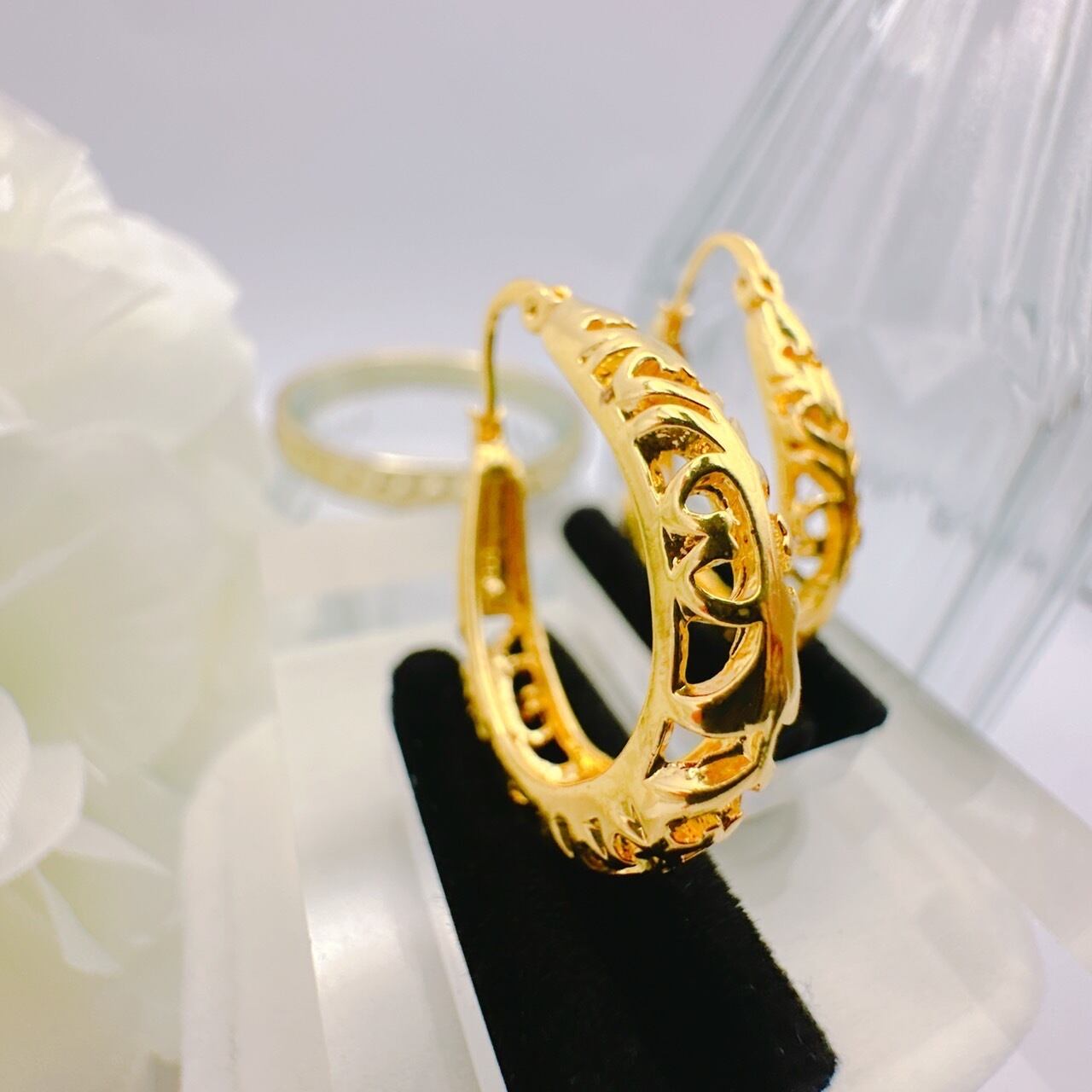 繊細なデザインでボリューム感のあるフープピアスで