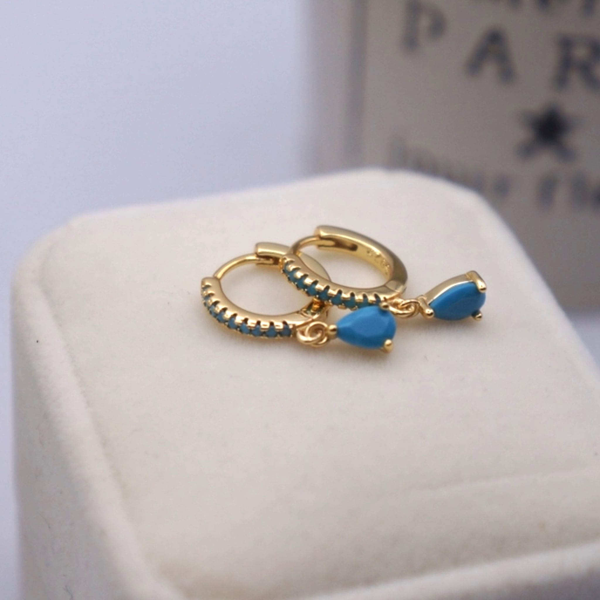 美しい水滴形のターコイズ調ブルーがアクセントで、キュービックジルコニアがキラキラと輝きます。