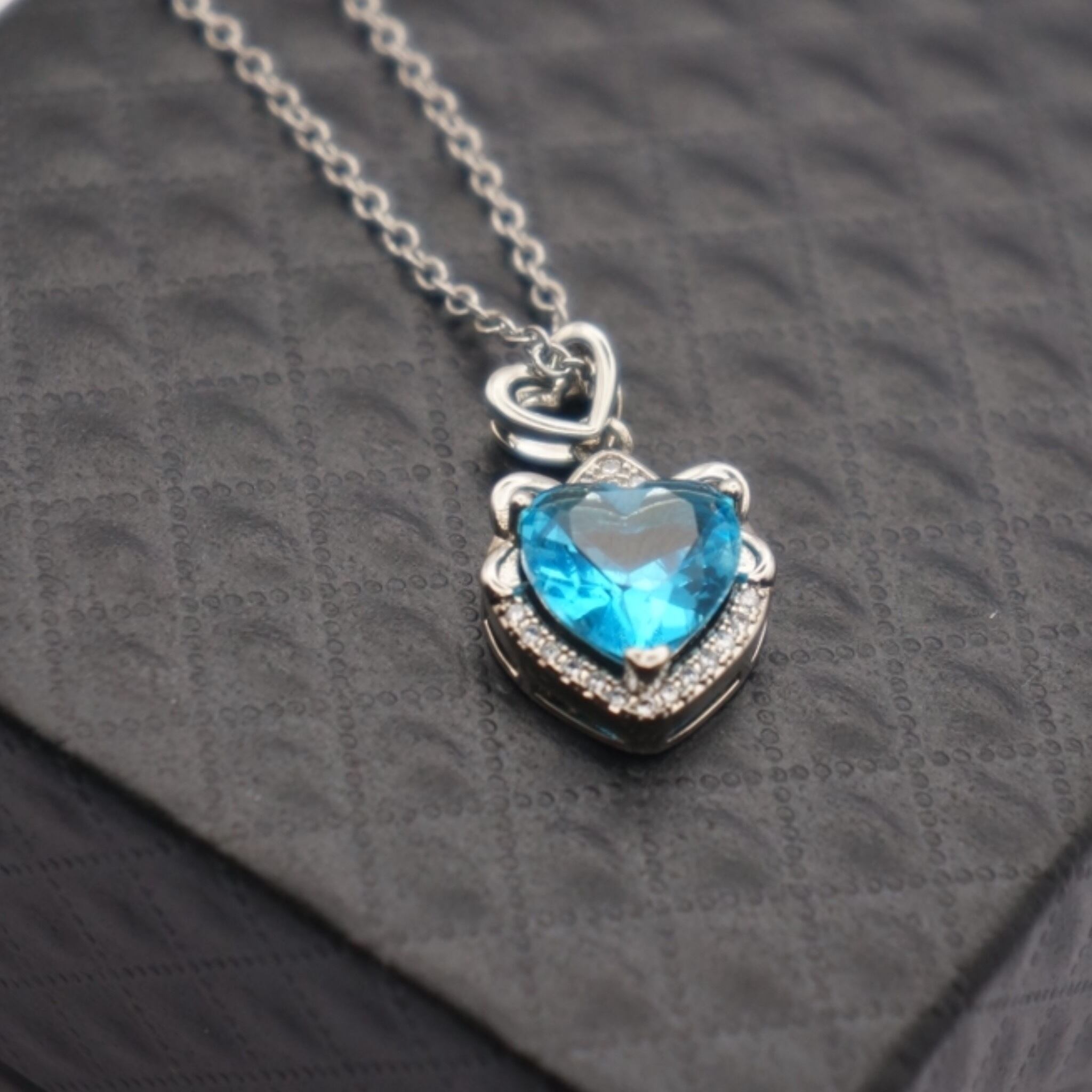 ブルー ネックレス ハート チャーム ペンダント アクセサリー レディース