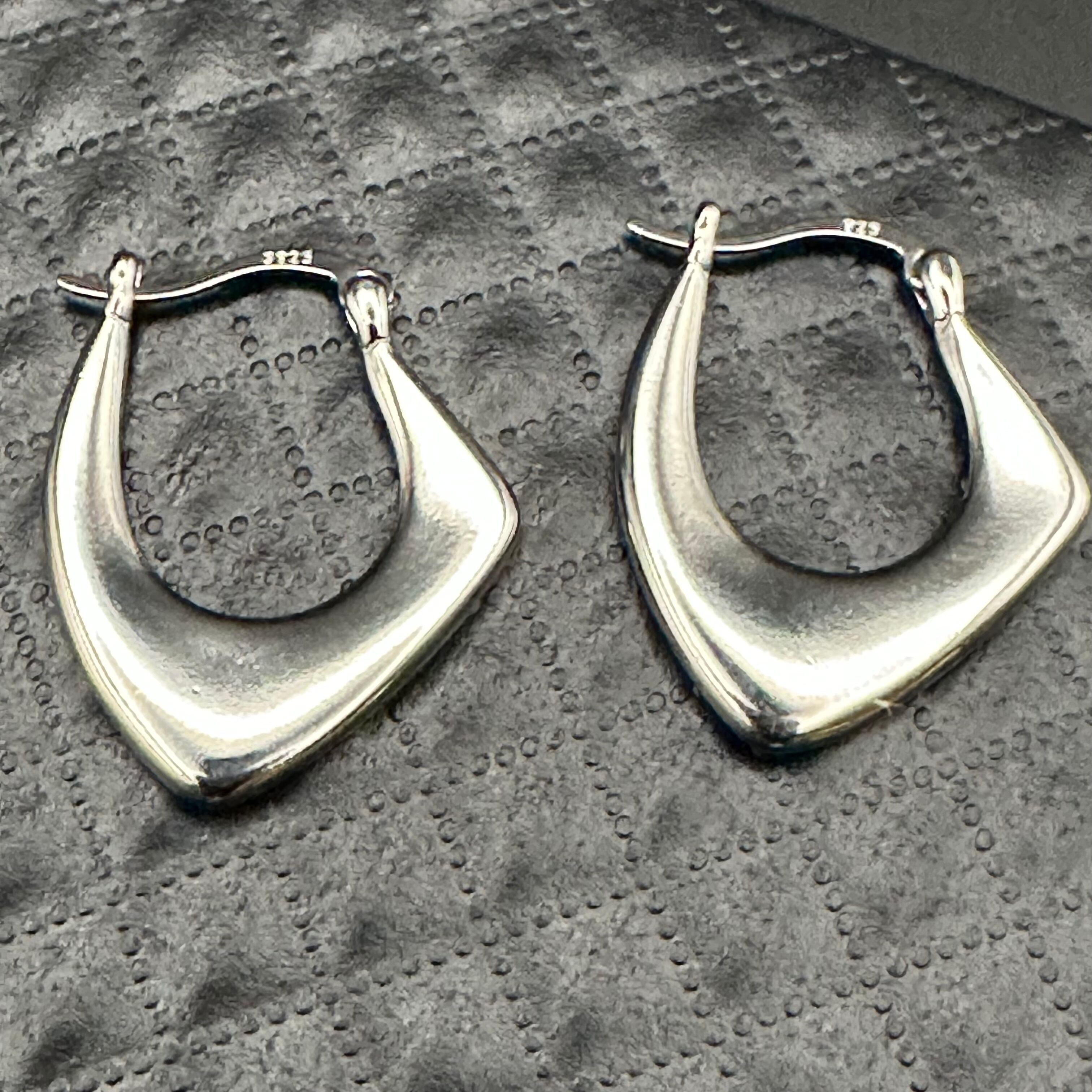 高品質 シルバー 変形 フープピアス 大人可愛い レディース 両耳