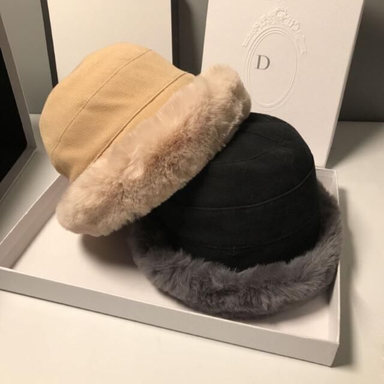 リバーシブル 帽子 ベージュ ふわふわ 秋 冬 バケットハット 韓国 大人可愛い