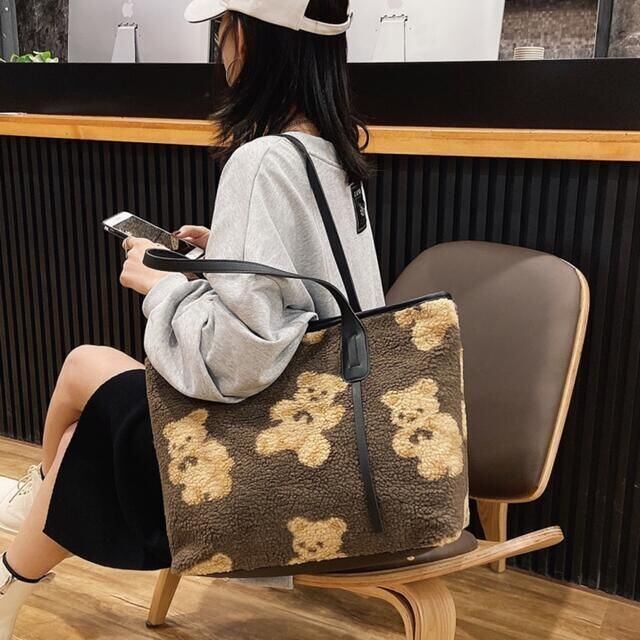 クマ くまちゃんもこもこ ハンドバッグ トートバッグ クマ ベア ホワイト